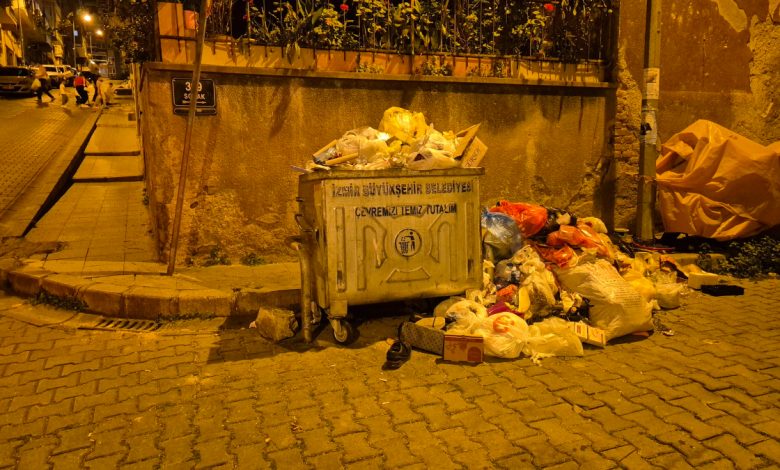 İzmir’de toplanmayan çöpler, utanç verici görüntülere sebep oldu.