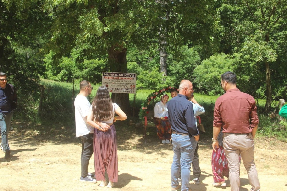 Hayır yemeğinde genç erkek ve kızlar da köy içinde bulunan 1 kilometrelik Aşıklar Sokağı’nda volta atarak nasiplerini aradılar. Aşıklar Sokağı renkli manzaralara sahne oldu.