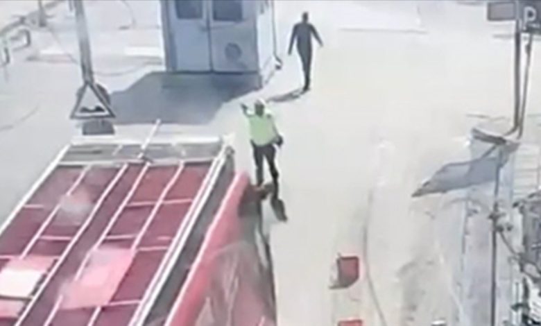 Adliye önünde misyonlu müşteki polis Mehmet Ö, elini kaldırarak ısrarla “dur” ihtarında bulunmasına karşın araç durmadı. Mehmet Ö, otobüsün çarpmaması için yolun kenarına atladı.