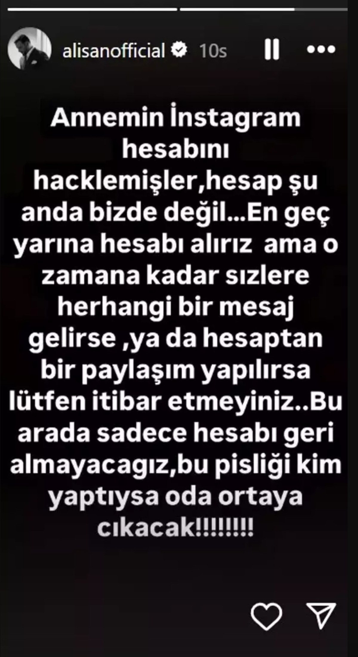 “Annemin Instagram hesabını hacklemişler, hesap şu anda bizde değil… En genç yarına hesabı alırız lakin o vakte kadar sizlere rastgele bir ileti gelirse, ya da hesaptan bir paylaşım yapılırsa lütfen prestij etmeyiniz…