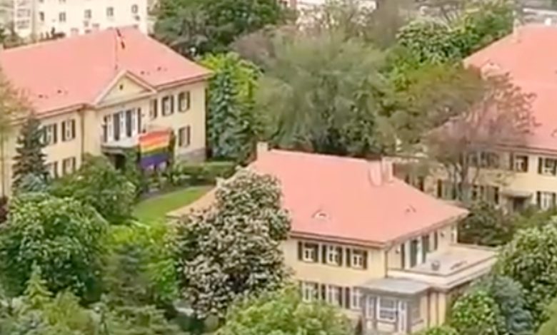 Almanya’nın Ankara Büyükelçiliği’ne LGBT flaması asıldı.