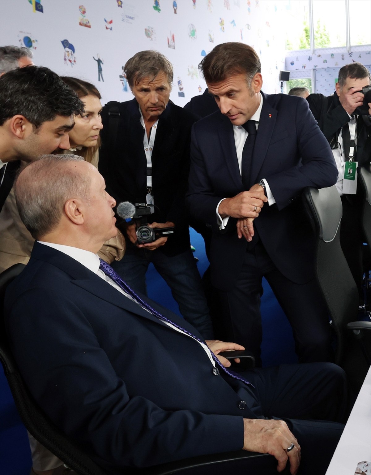 Cumhurbaşkanı Erdoğan, Fransa Cumhurbaşkanı Emmanuel Macron ile de sohbet etti.