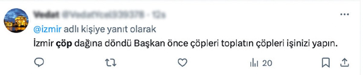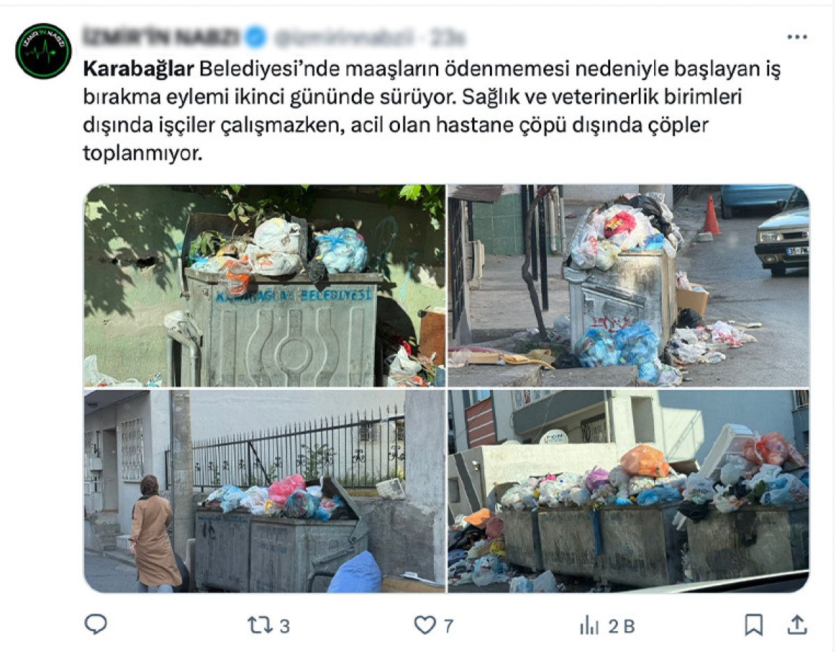 Mahallelerinde oluşan çöp yığınlarını X hesabı üzerinden yayınlayan İzmirliler, belediyeden rastgele bir karşılık göremedi.