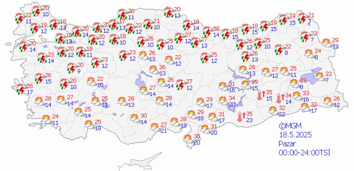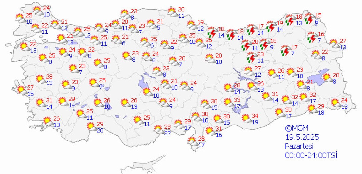 Güneydoğu’da 35 dereceleri geçecek sıcaklıklar. İstanbul’da ayın 20’sinden sonra yaz sıcaklarına yanlışsız gidiyoruz. Pazartesi günü yağış bitiyor, yalnızca Doğu Karadeniz’de olacak, öbür bölgelerde yok. Ondan sonraki günlerde Türkiye’de pek yağış kalmıyor, çarşambadan sonra sıcaklıklar artmaya başlıyor. İzmir, 32-33 dereceyi görecek. Adana, 40 dereceyi bulacak. Ankara, 30 dereceye yaklaşacak. Osmaniye ve Hatay da 40 dereceyi geçecek.
