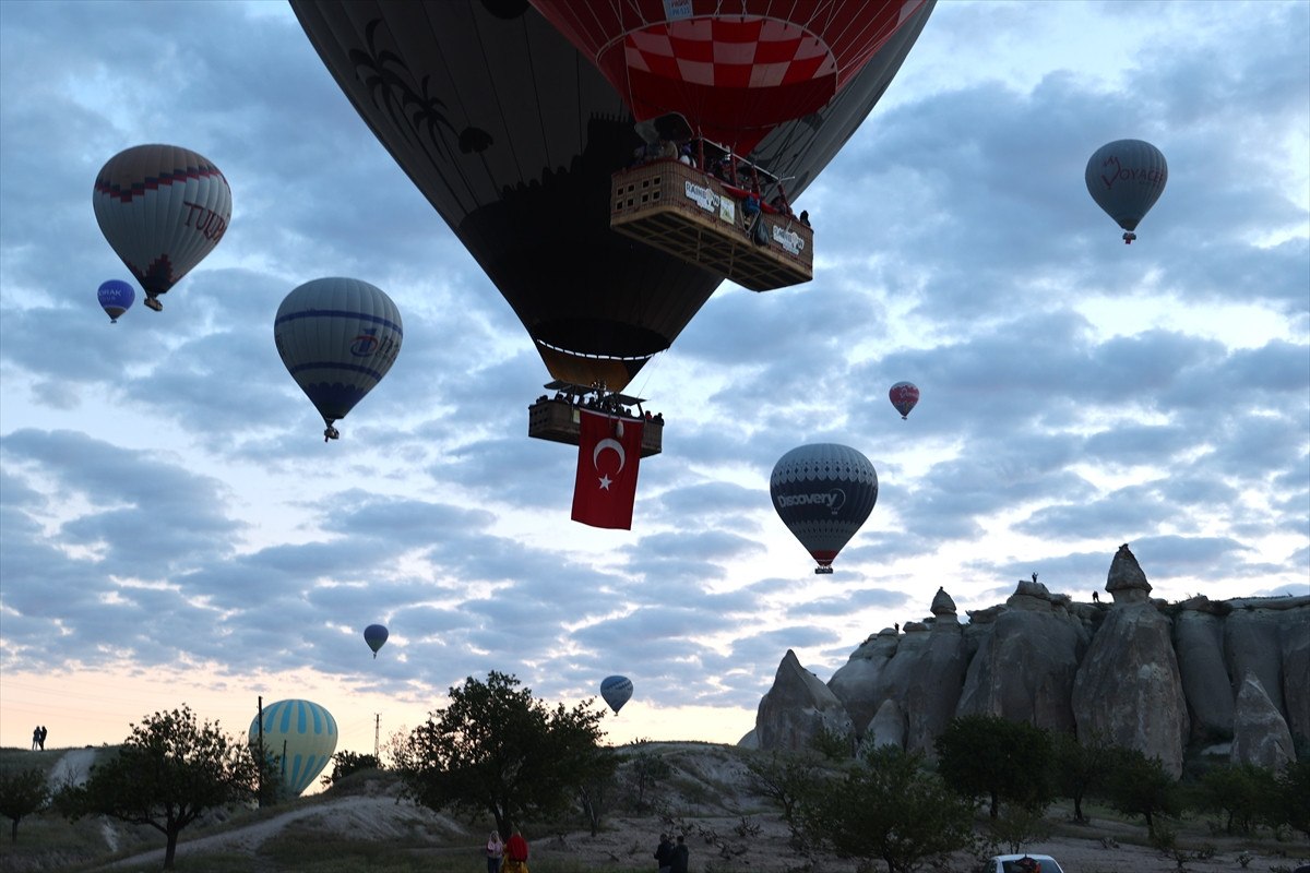 “KAPADOKYA’DA BALONLAR TÜRK BAYRAKLARI İLE HAVALANIYOR”