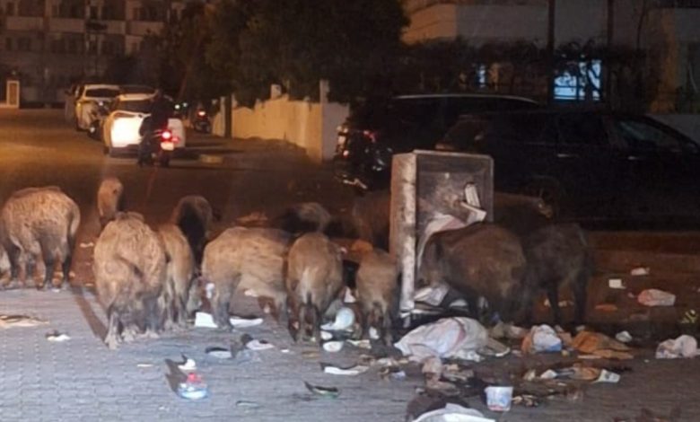 Marmaris’te çöpler toplanmıyor, yaban domuzları sokakları işgal etti
