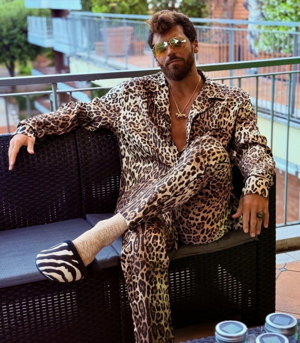 Baştan aşağı leopar desenli bir kadro giyen Can Yaman’ın kombinini zebra desenli terlikle tamamladı. Yalnızca kıyafeti değil oturuş biçimi bile yorumlara husus olan ünlü oyuncu, toplumsal medyada gündem olmayı yeniden başardı.