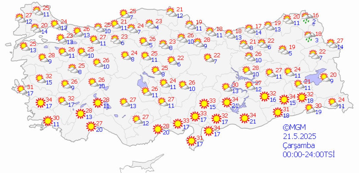 Meteoroloji Genel Müdürlüğü’nden yayınlanan son hava raporunu nazaran, haziran ayına girmeden sıcaklıklar 30 dereceyi görecek.