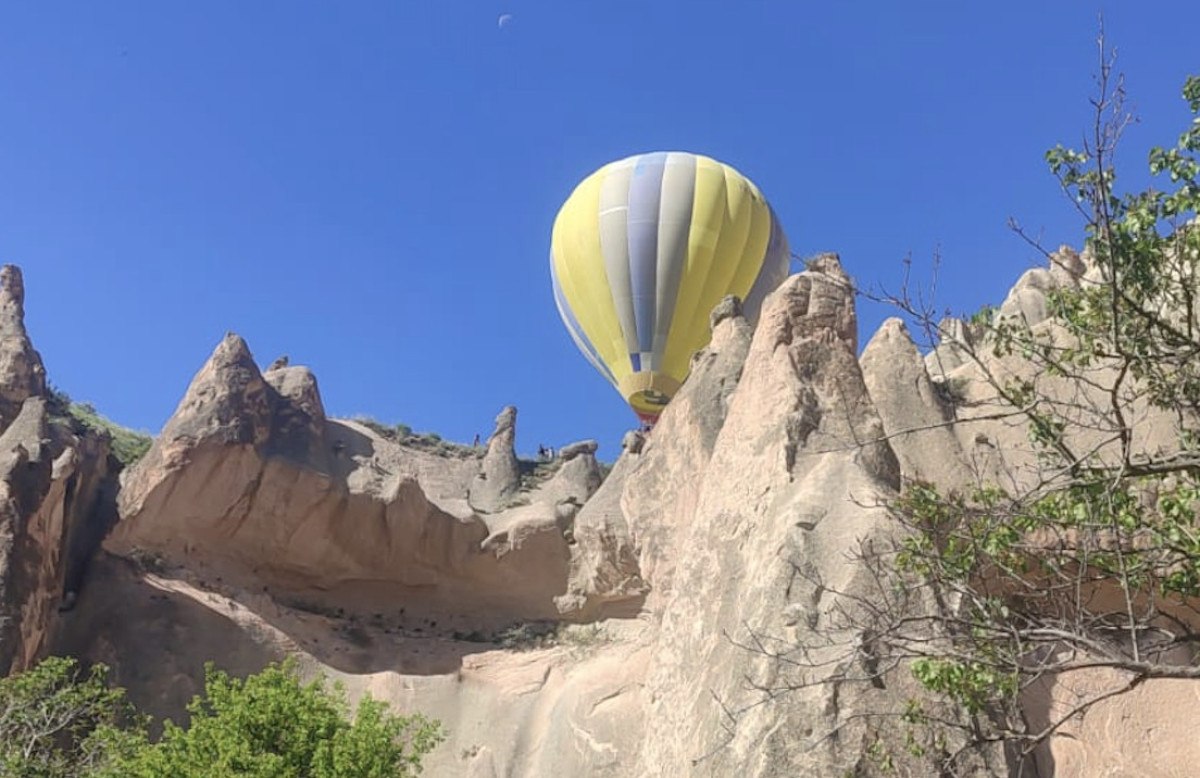 Nevşehir’de sıcak hava balonu, kayalıklara zarurî iniş yaptı