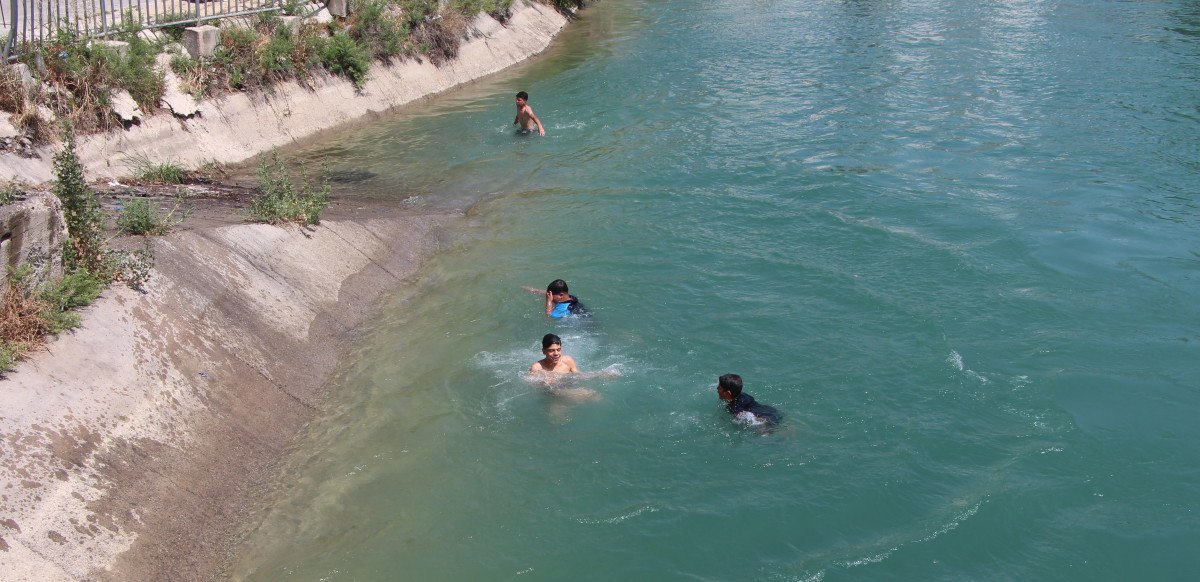 Bazı gençler de tehlikeye aldırış etmeden sulama kanallarına girerek serinledi.