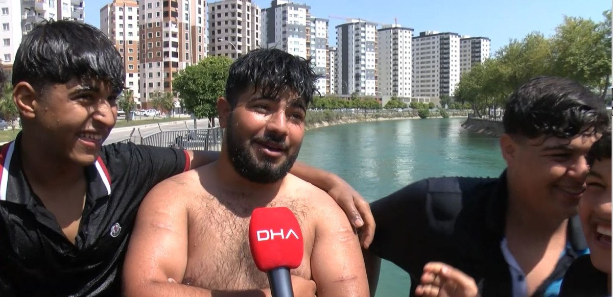Adana resmen yanıyor, yapacak bir şeyimiz yok. Bir haftadır serinlemek için sulama kanalına giriyoruz. Yaklaşık 10 yıldır bu bölgede yüzüyoruz. Bizim için buralar tehlikeli değil ancak çok sayıda kişi burada boğularak hayatını kaybetti. Yüzme bilenler için burası hoş fakat bilmeyenler mutlaka gelmesin.