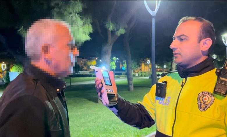 Alkolmetreyi üfleyen Hikmet K., 1.58 promil alkollü çıktı.