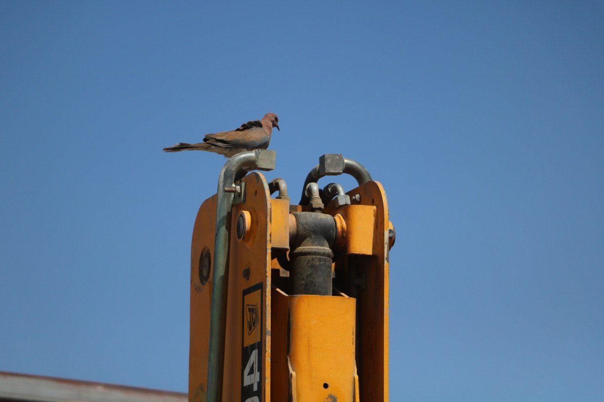 Hatay’ın Antakya ilçesinde hafriyatçılık yaparak ekmek parasını kazanan Bülent Kuyucu’nun Narlıca Mahallesi’nde park halinde bulunan kepçesinin bomunun üzerine kumru yuva yaptı.
