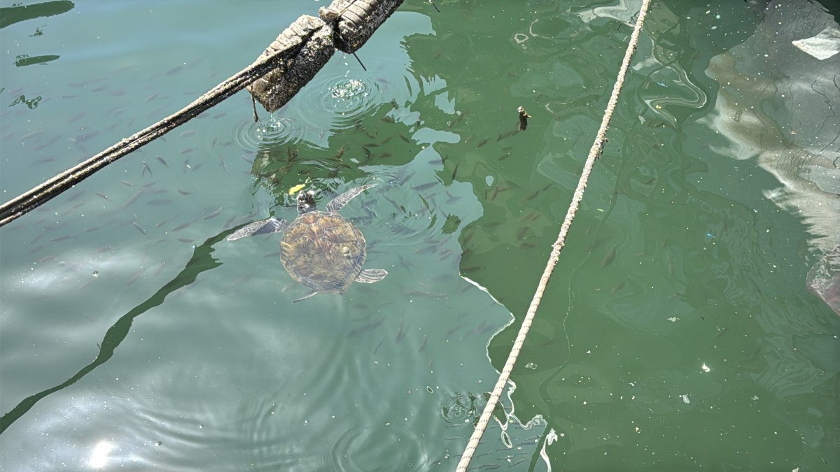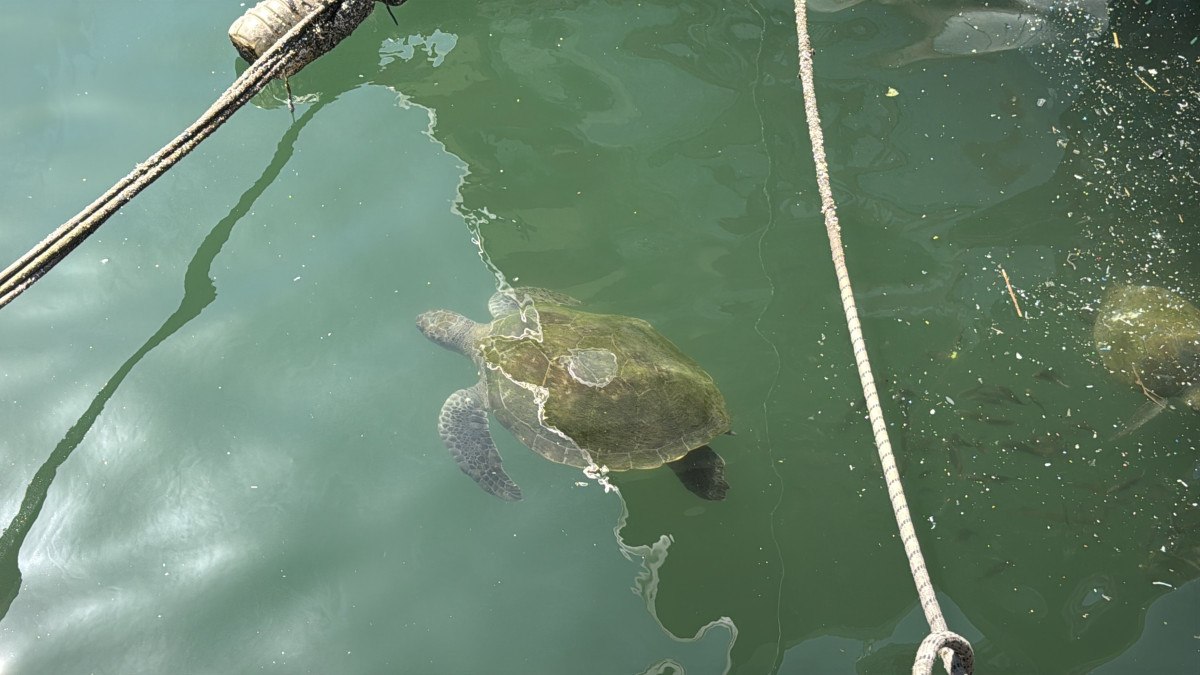Eskiden birkaç tane olurdu, artık onlarca. Avdan döndüğümüzde ağlarımızdaki küçük karidesleri, yengeçleri denize atıyoruz. Kaplumbağalar da bu fırsatı kaçırmıyor.
