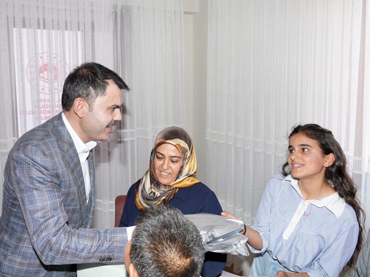 Daha sonra 2 çocuklu Er ailesinin konutuna konuk olan Bakan Kurum, “Devletimiz milletimiz el ele verdi, bugün hamdolsun vatandaşımız bu konutlarda inanç ve huzur içinde oturuyor” dedi.