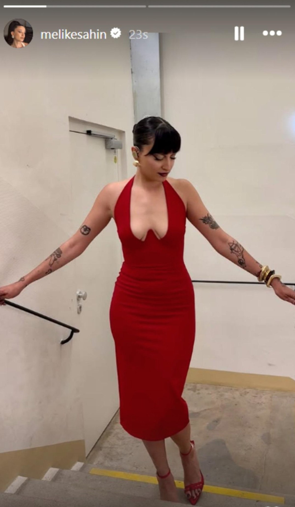 Viyana konseri öncesi derin dekolteli kırmızı elbisesiyle poz veren Şahin, karelerini Instagram’dan yayınladı. Fotoğraflat yayınladığı andan itibaren hayranları tarafından ağır ilgi gördü.