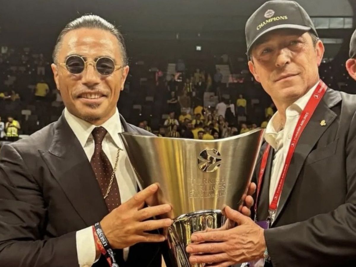 Fenerbahçe’nin Monaco karşısındaki EuroLeague zaferinden sonra alana inen Nusret, kupa merasimine Ali Koç’la birlikte katılmıştı.