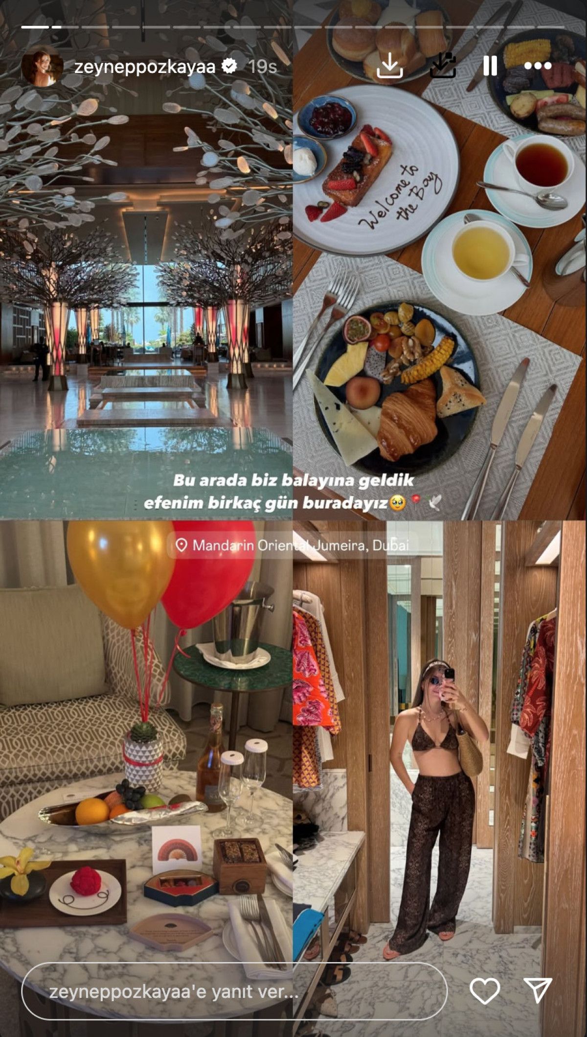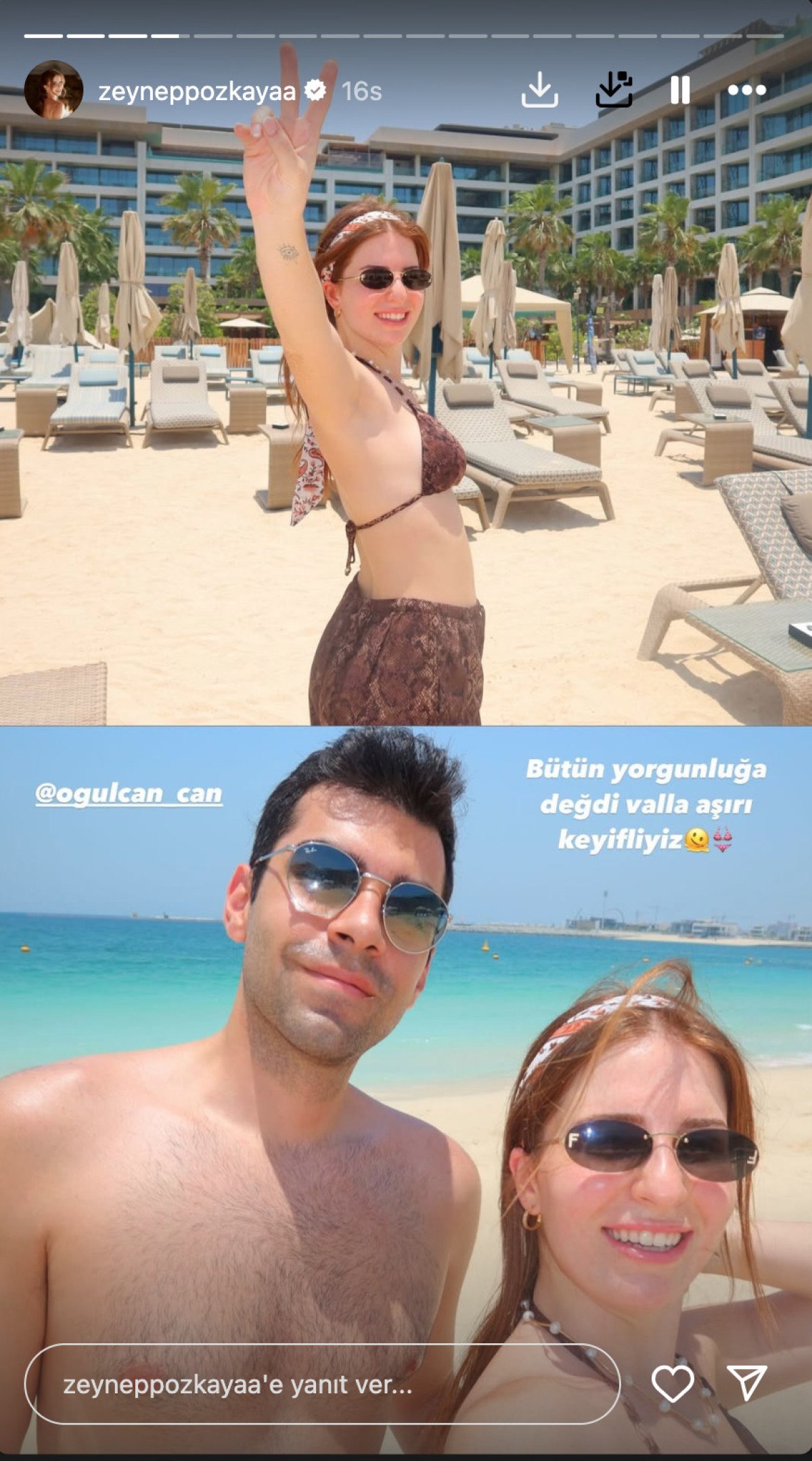 Genç çift düğün sonrası balayı için soluğu Dubai’de aldı. Özkaya, tatil pozlarını Instagram’dan yayımladı. Dubai’ye giden ikiliden oyuncu, balayı pozlarını “Bu ortada biz balayına geldik. Birkaç gün buradayız” notuyla sevenlerinin beğenisine sundu.