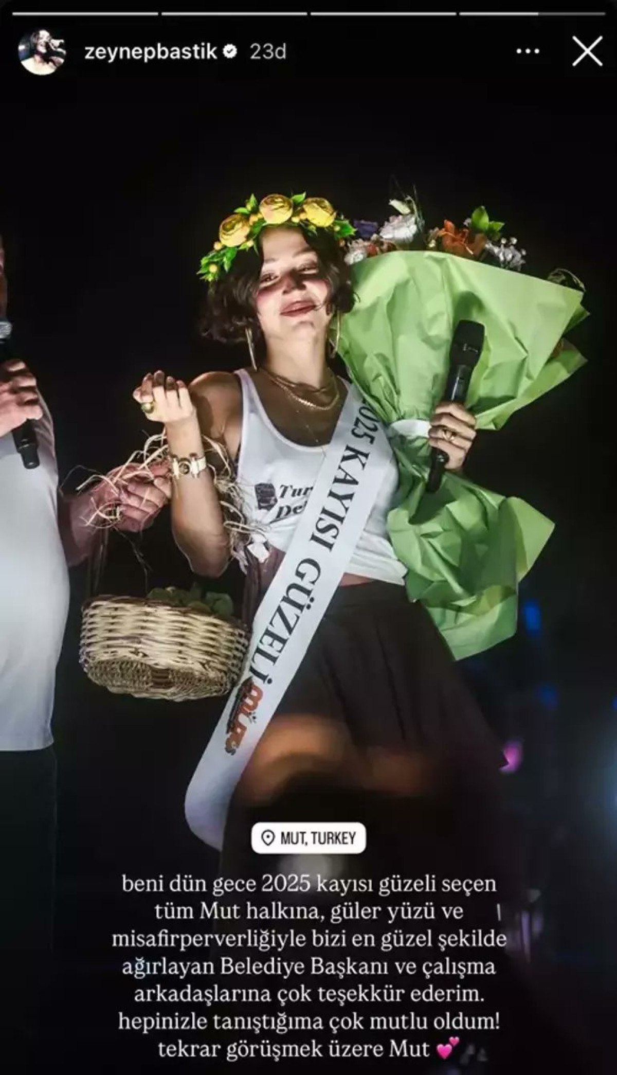 Bastık bu kere da “2025 Kayısı Güzeli” seçildi. Instagram hesabından paylaşım yapan ünlü müzikçi şu tabirleri kullandı: “Beni dün gece 2025 kayısı hoşu seçen halka ve hoş yüzlü ve misafirperverliğiyle bizi en hoş şekilde ağırlayan belediye başkanı ve çalışma arkadaşlarına çok teşekkür ederim. Hepinizle tanıştığıma çok keyifli oldum.”