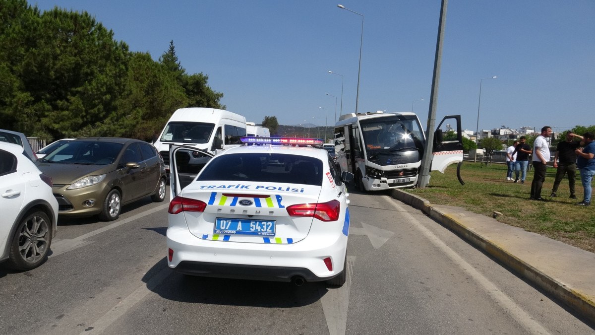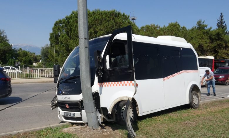 Antalya’da freni patlayan minibüs evvel araca sonra aydınlatma direğine çarptı