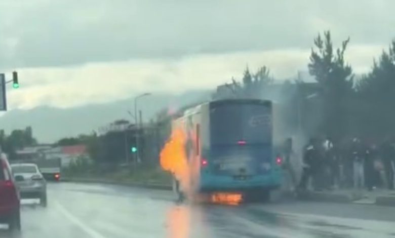Erzurum’da belediye otobüsü yolcular içindeyken alev aldı