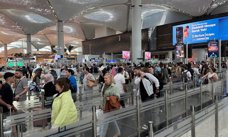 Sabahın erken saatlerinden itibaren İstanbul Havalimanı’na gelen yolcular, giriş kapılarında ve terminal önünde uzun kuyruklara neden oldu.
