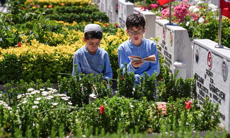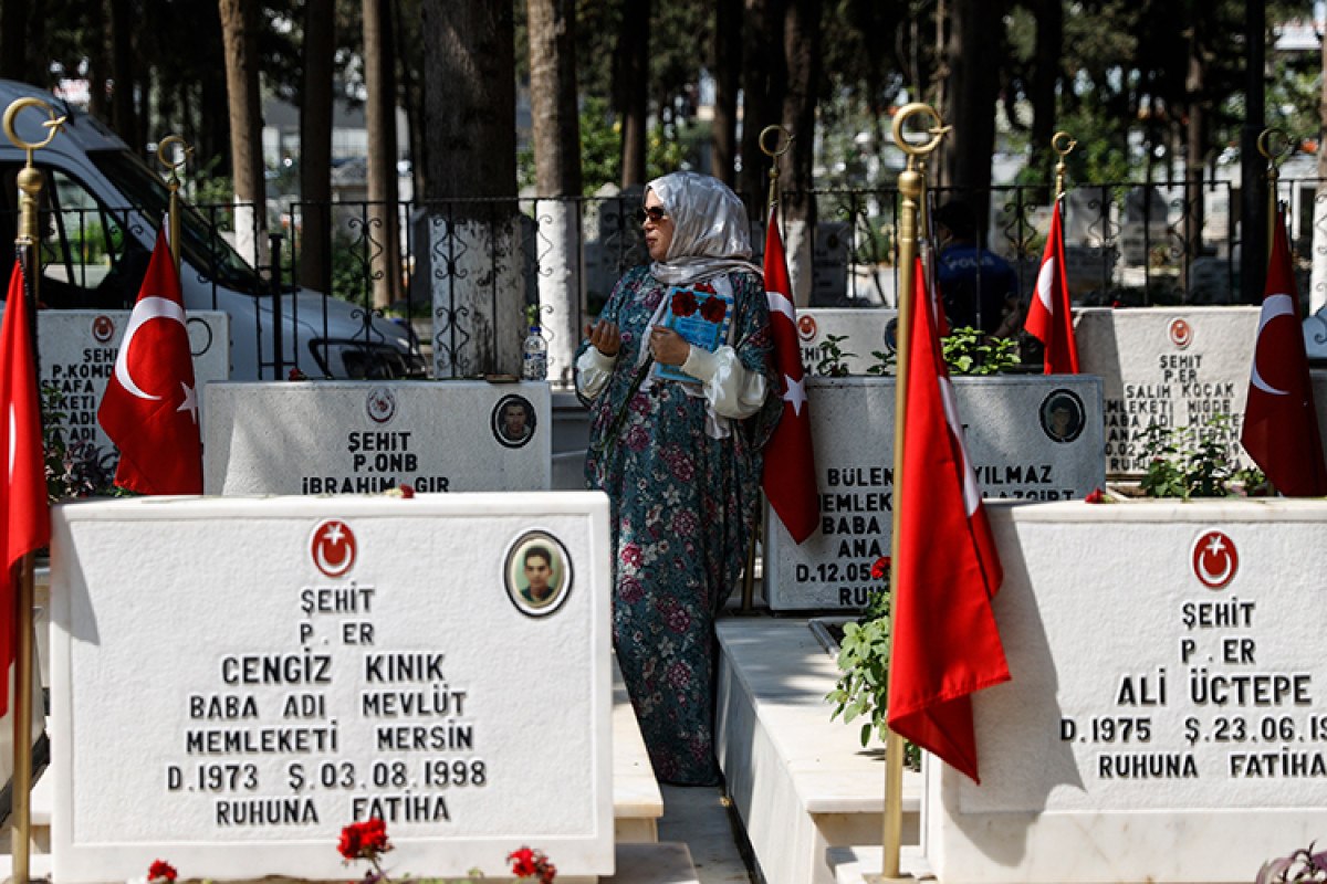Mersin’de de vatandaşlar, Toroslar ilçesindeki Kent Mezarlığı’ndaki şehitlikte yakınlarının kabirlerine çiçek bıraktı, dua okudu.