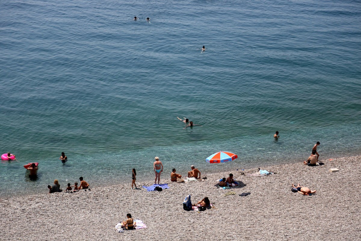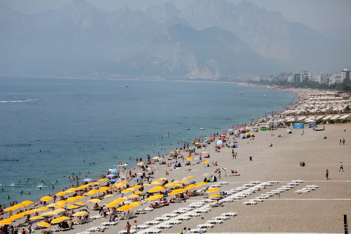 Tatilcilerin yanı sıra, kurban kesen Antalyalılar da öğlenden sonra soluğu kıyıda aldı. Kıyıdaki yoğunluk varyant seyir terasından görüntülendi.