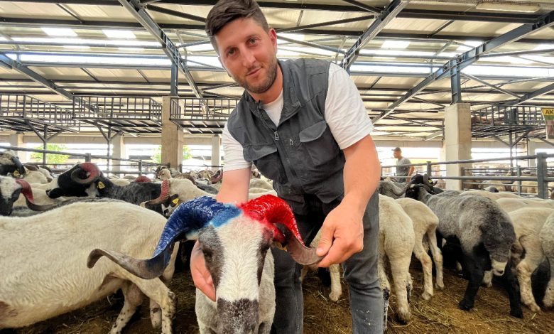 Bursa’da bordo-mavi boynuzlu koçlar kurban pazarının gözdesi