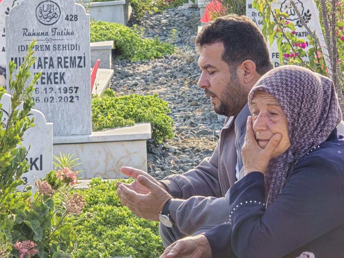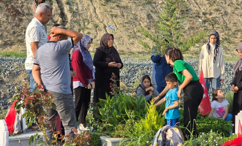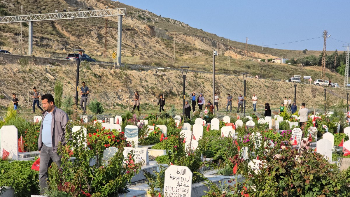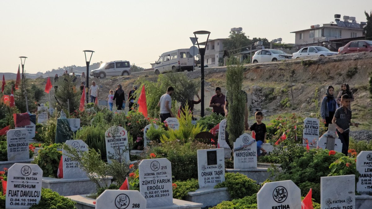 Kurban Bayramı’nın birinci gününde, Antakya ilçesi Narlıca Mahallesi’ndeki sarsıntı şehitliği yakınlarını kaybedenlerle dolup, taştı.