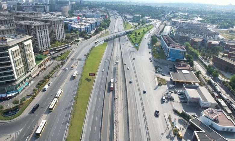 E-5 karayolu Zeytinburnu Cevizlibağ mevkiinde havadan dron ile çekilen imajda Bakırköy ve Ankara istikametindeki şeritlerde trafiğin olmadığı görüldü.