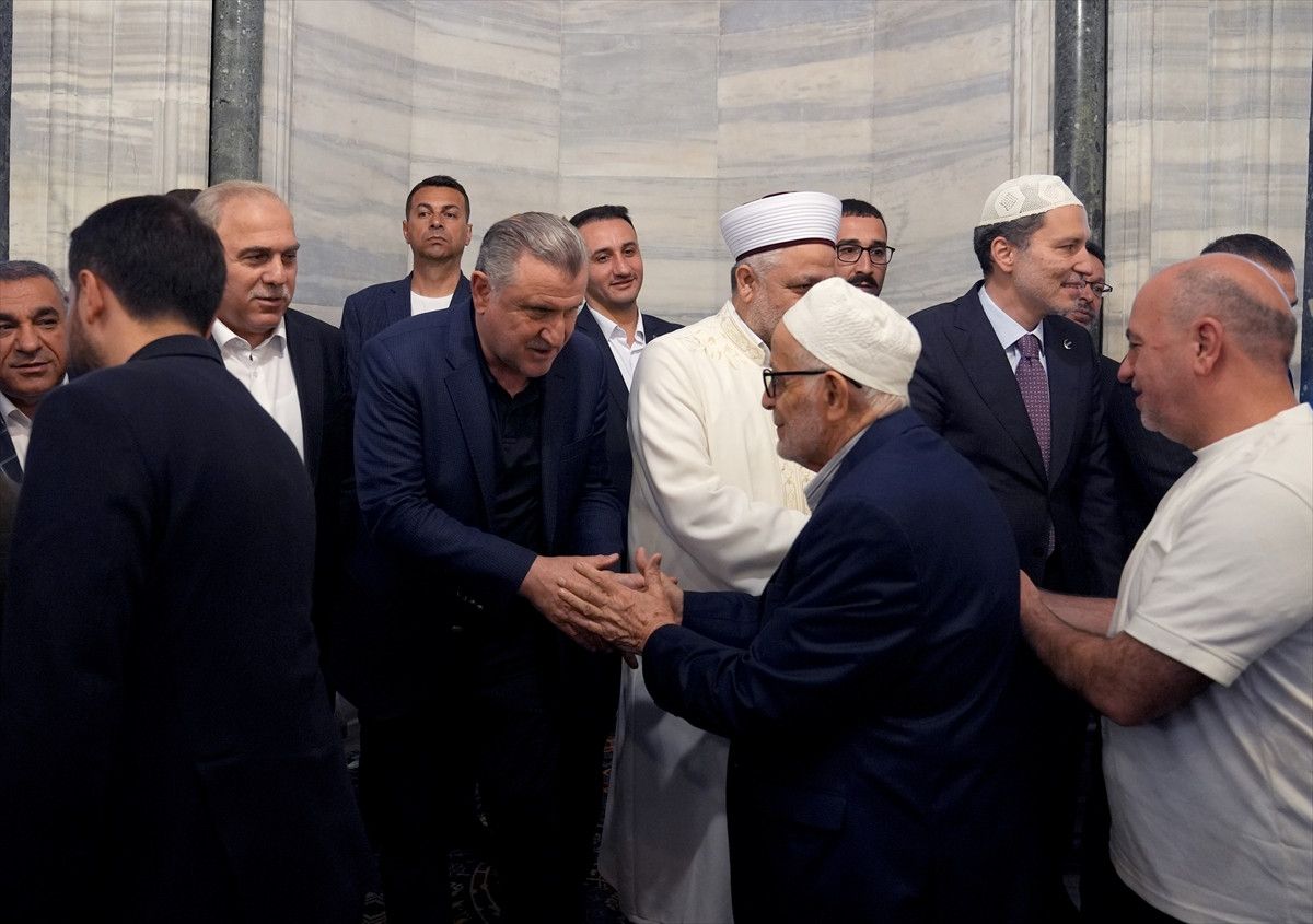 Yeniden Refah Partisi Genel Lideri Fatih Erbakan da namaz için Fatih Camii’ndeydi.