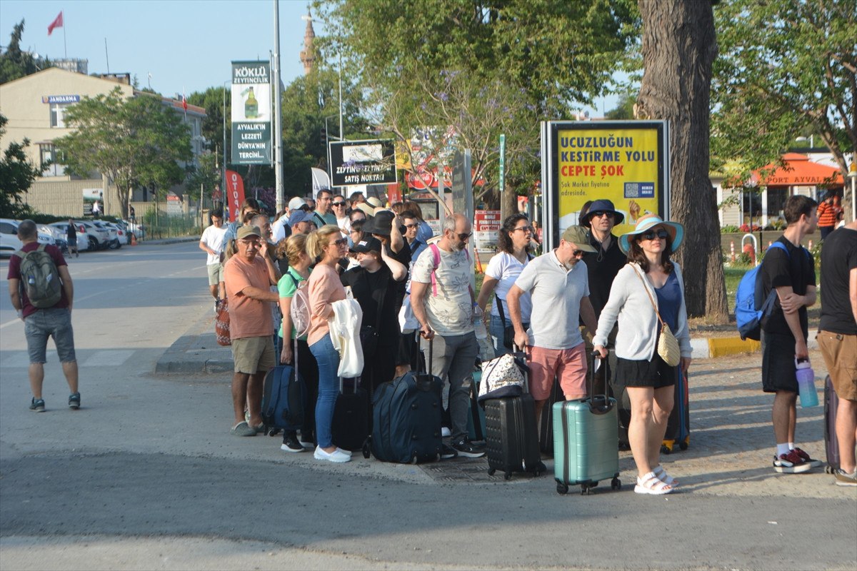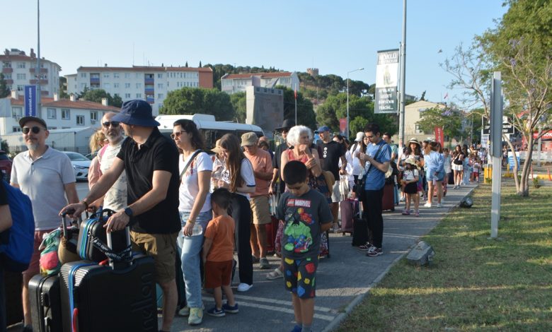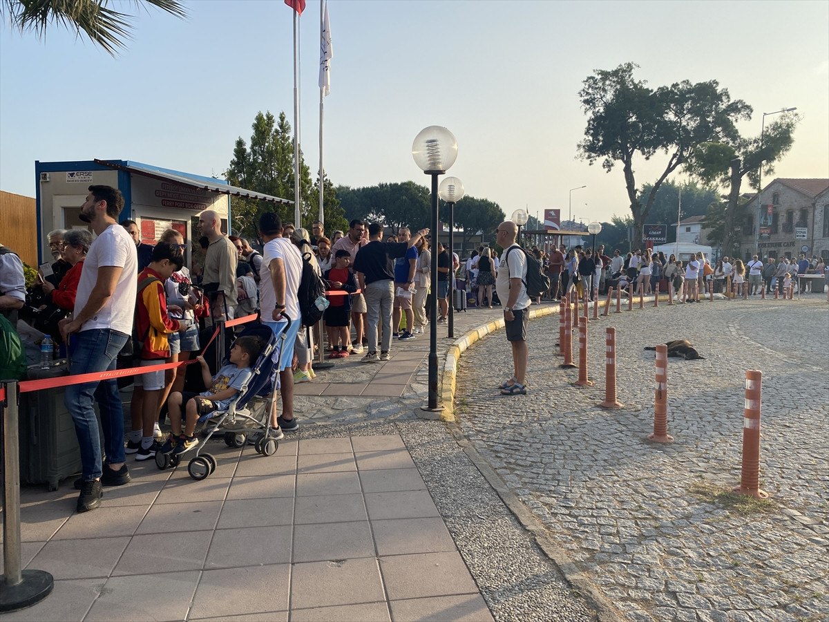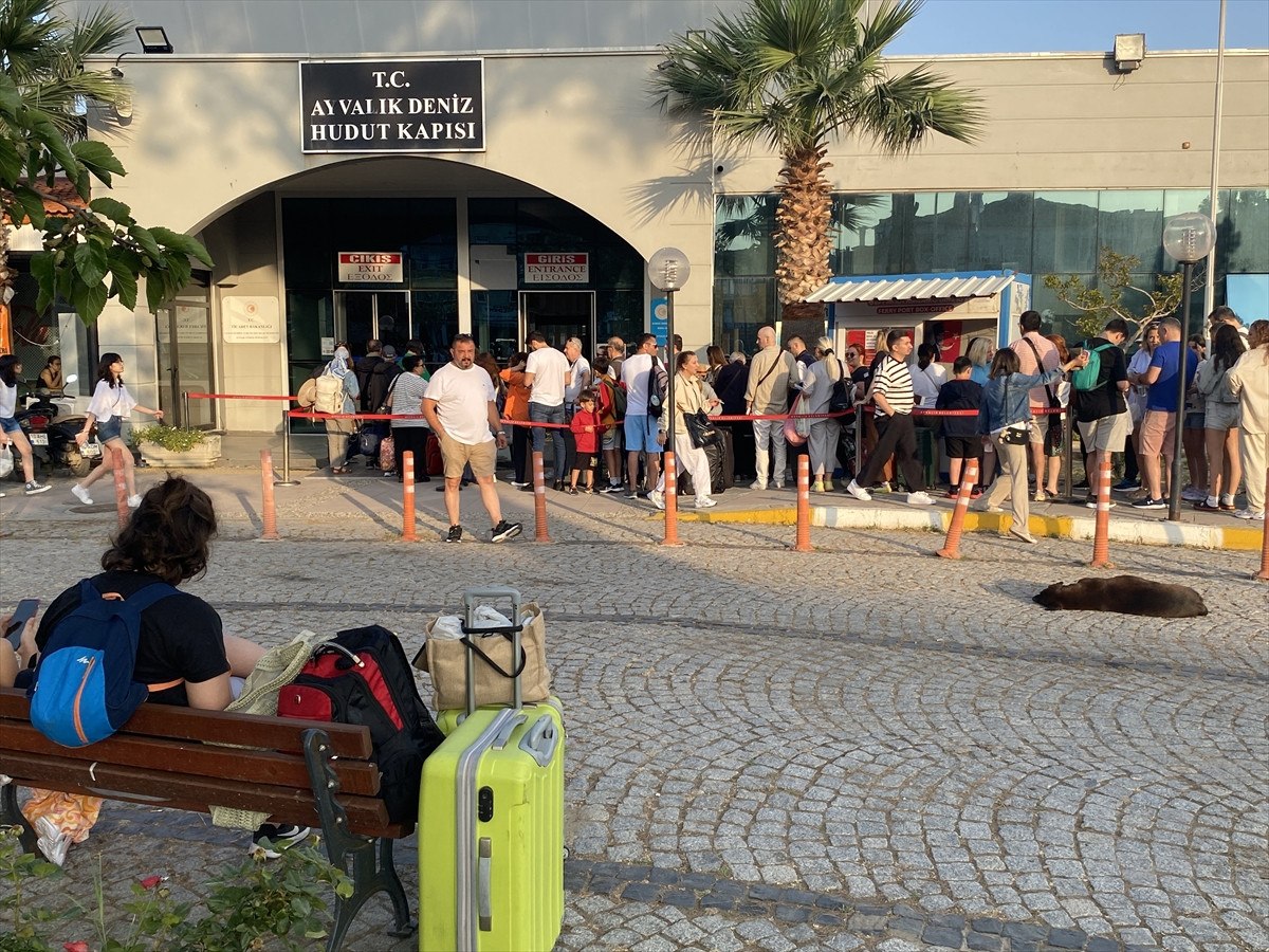 Sabahın erken saatlerinden itibaren Ayvalık Deniz Hudut Kapısı’na gelen tatilciler, süreçlerin akabinde Midilli’ye geçmeye başladı.
