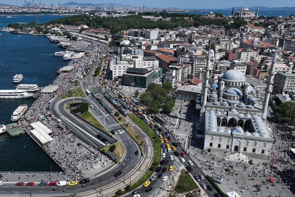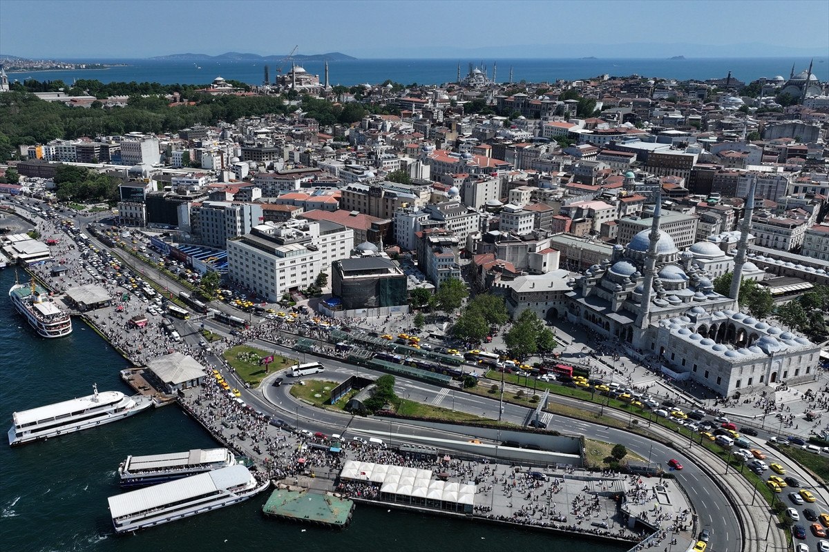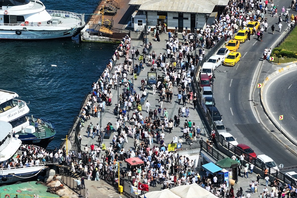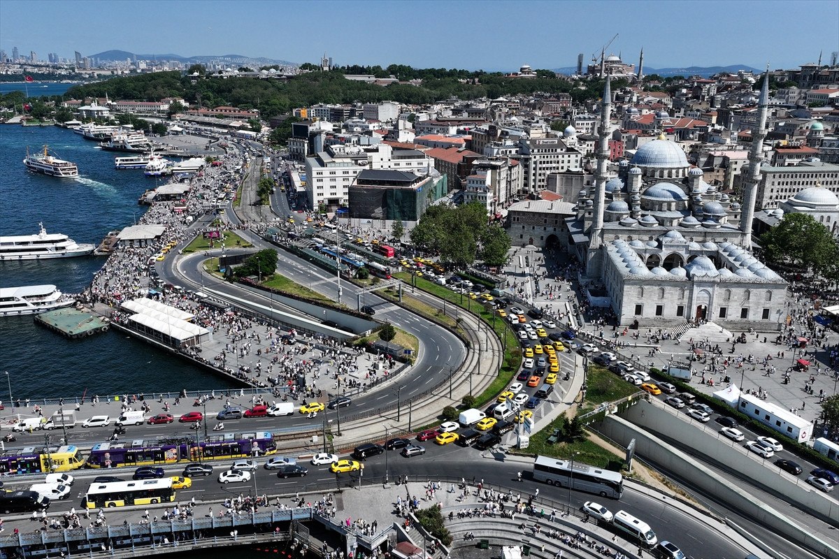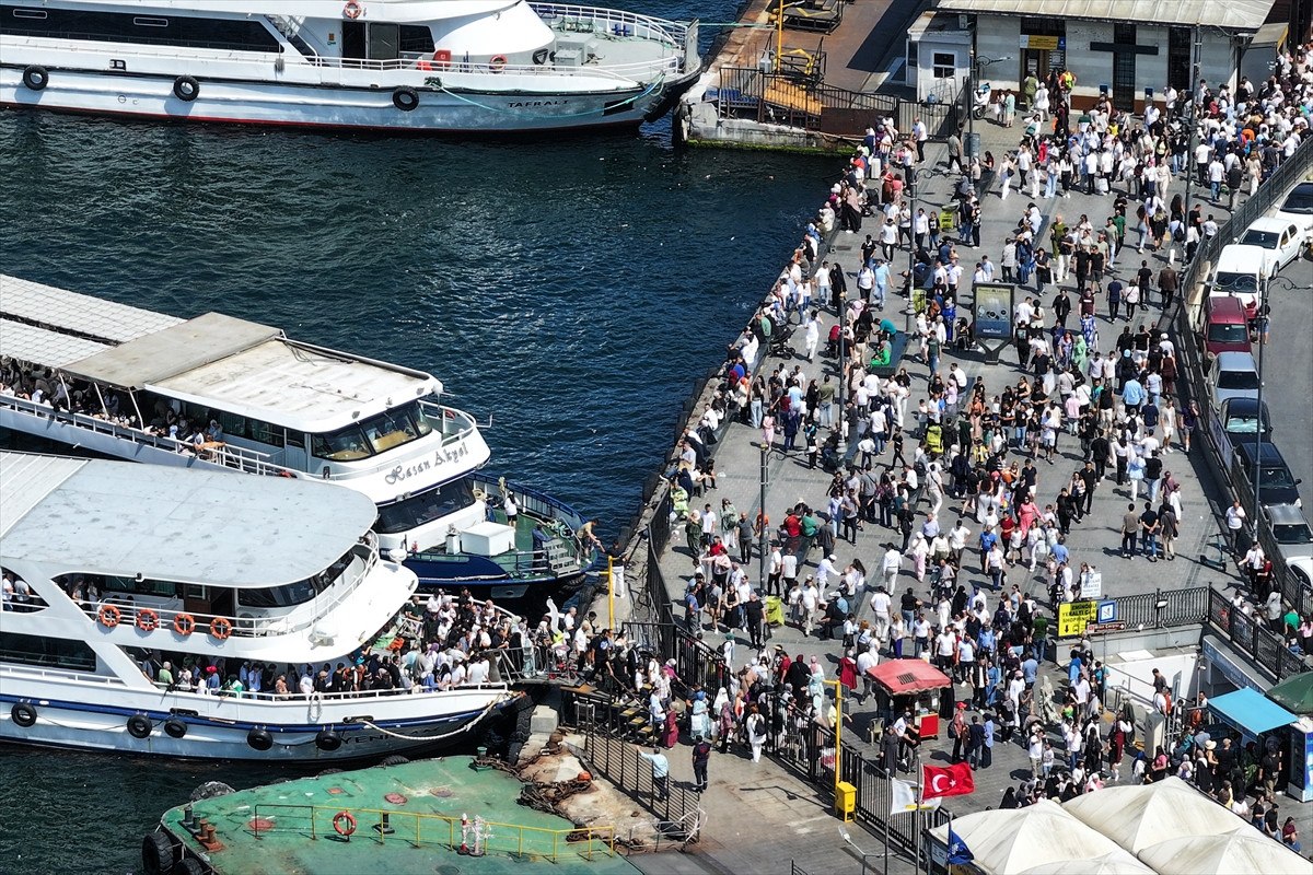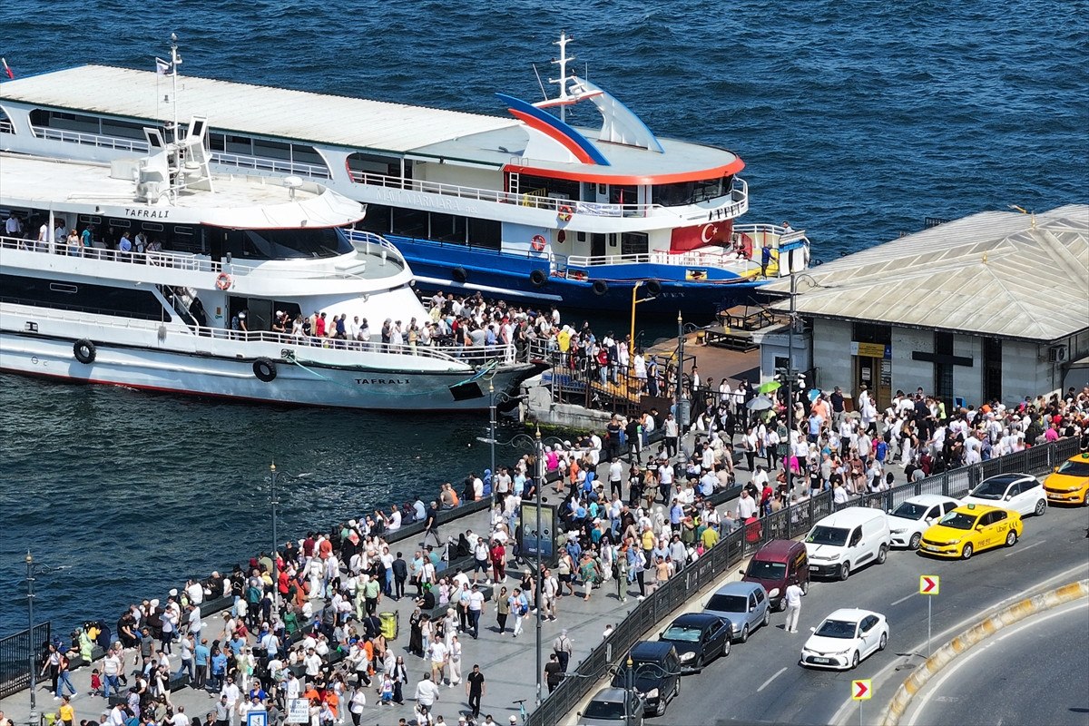 İstanbullular, sıcak havaya karşın Eminönü Meydanı’nı doldurdu.