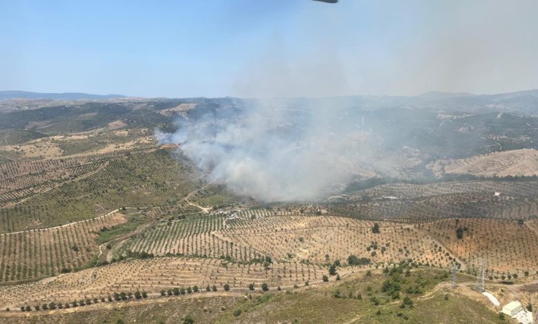 İhbar üzerine derhal harekete geçen İzmir Orman Bölge Müdürlüğü takımları, alevlere 3 uçak, 3 helikopter ile havadan, 14 arazöz, 3 su ikmal ve 3 dozer ile karadan müdahale ediyor.