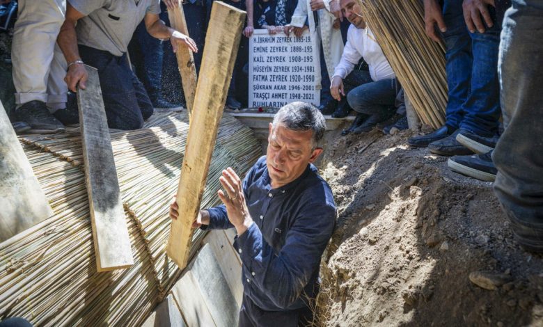 Mezarlıkta CHP Lideri Özgür Özel, mezara inerek Ferdi Zeyrek’in naaşını defnetti.