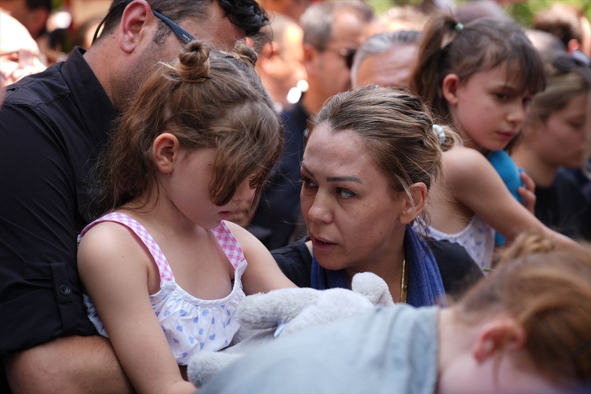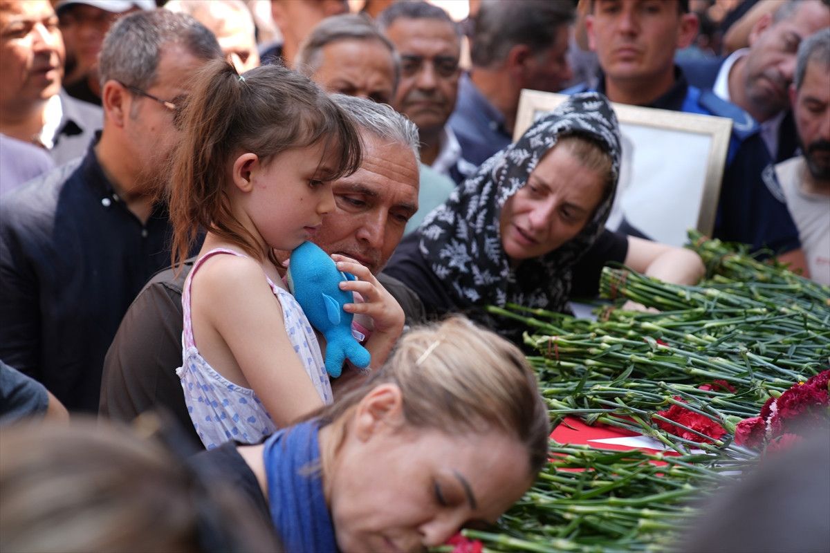 Diğer kızının ise küçük yaştaki çocuğuyla birlikte tabutun başında durduğu ve başsağlığı dileyen kalabalığın ortasında yer aldığı görüldü.