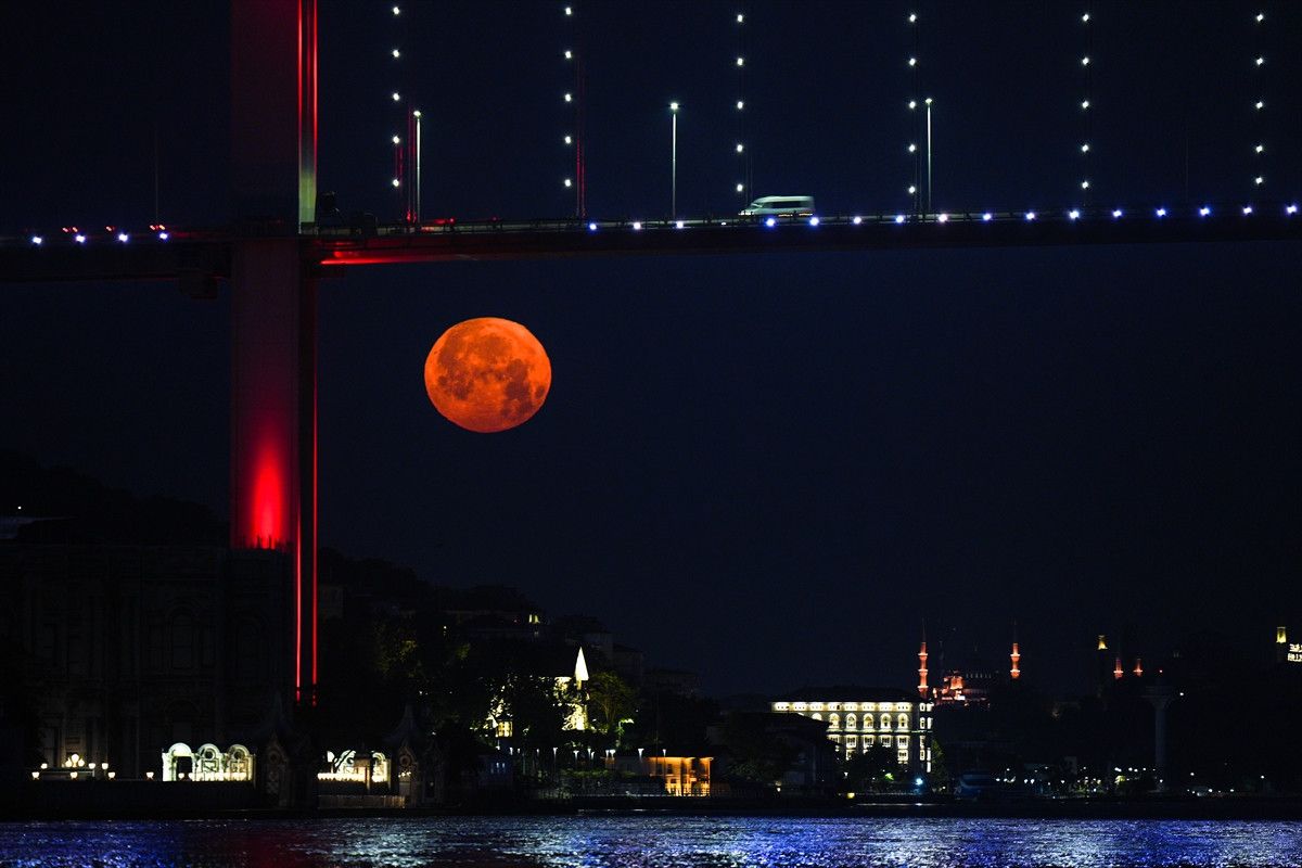 Saat 04.30 sıralarında görülmeye başlanan ve 04.55’te büsbütün batan Çilek Dolunayı, Beşiktaş Ortaköy kıyısında eşsiz imgeler oluşturdu.