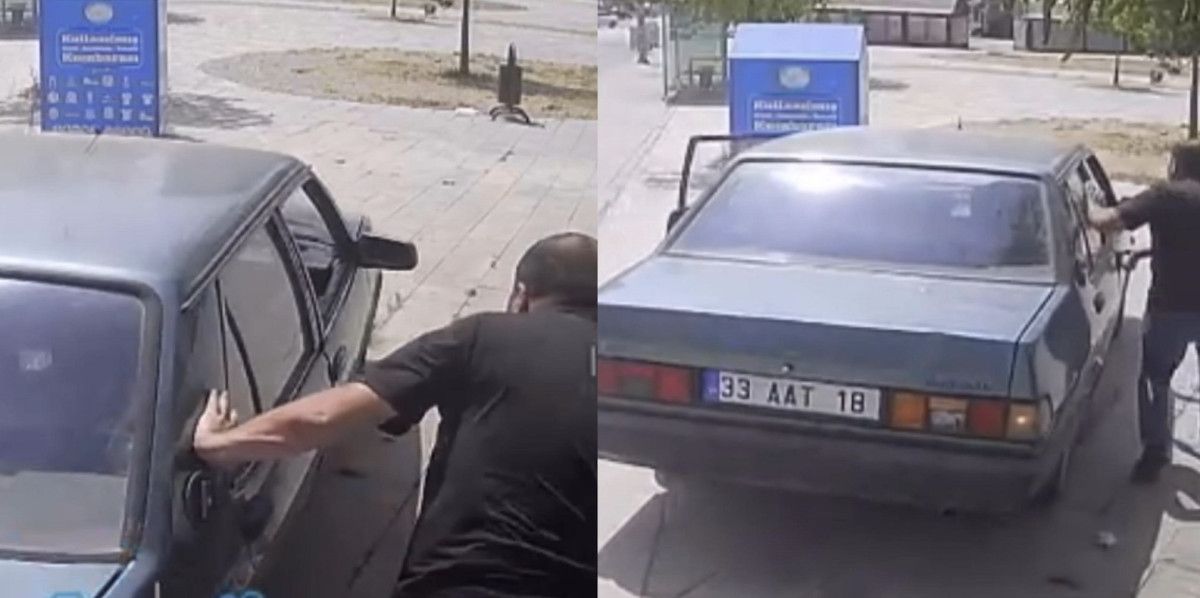 Görüntülerde araç sahibinin de arttan gelme anı yer aldı.