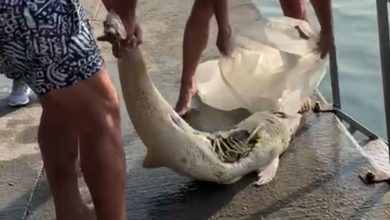 Bebek kıyısına vuran yaklaşık 1,5 metre uzunluğundaki meyyit beyaz yunus, etraftakiler tarafından denizden çıkarılarak çöp konteynerıne atıldı. O anlar cep…