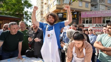 Bursa’da en uzun börek yarışında 11 metre börek yedi