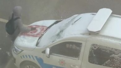Söğüt ilçesinde, bir polis aracının kaput kısmında bulunan Türk bayrağının üzerinin karla kaplı olduğunu gören çocuk, karı elleriyle temizledi. O…