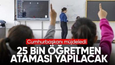 Cumhurbaşkanı Erdoğan "25 bin öğretmen atama sürecini başlatıyoruz" dedi.
