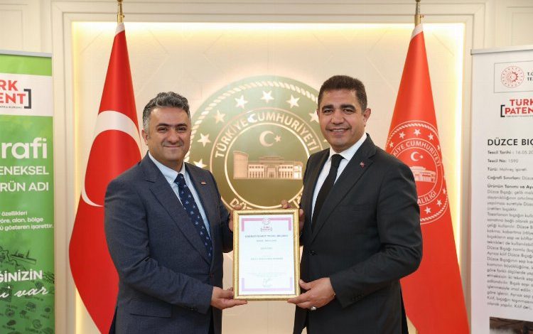 Düzce Valiliği’nde gerçekleşen törende tescil belgesi TÜRKPATENT Başkanı Prof. Dr. M. Zeki Durak tarafından Düzce Valisi Selçuk Aslan’a takdim edildi.