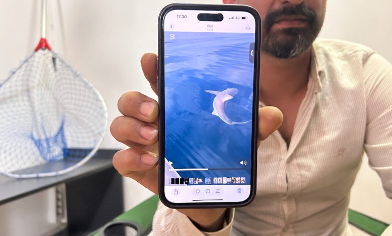 Köpek balığını fark eden Bayar, dehşet içerisinde ziyan vermemek için bir mühlet hayvanın ağzındaki kancayı çıkartmak için gayret harcadı.