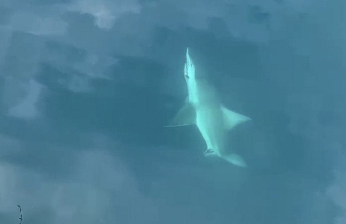 Köpek balığını fark eden Bayar, dehşet içerisinde ziyan vermemek için bir mühlet hayvanın ağzındaki kancayı çıkartmak için gayret harcadı.