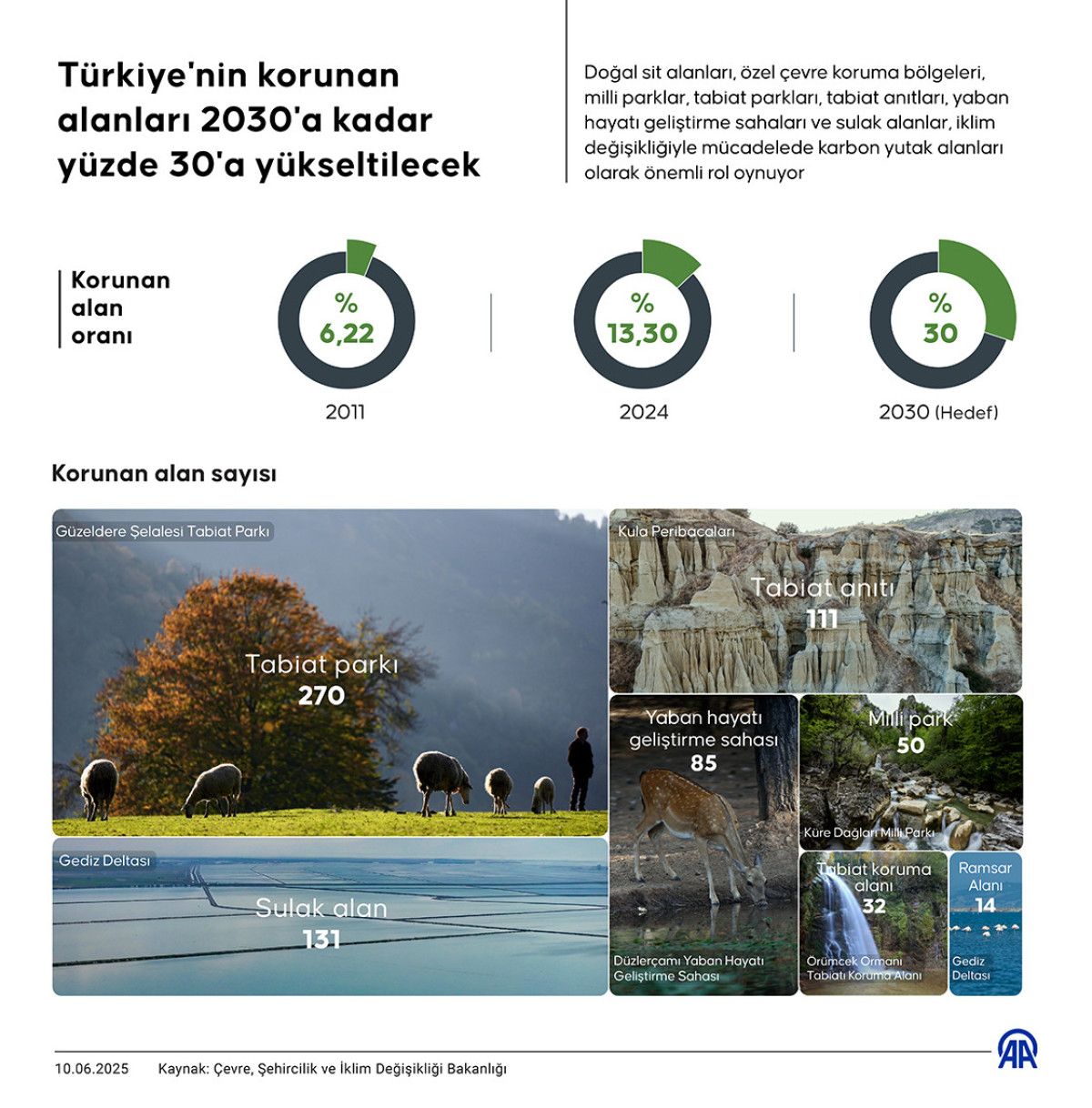 Çevre, Şehircilik ve İklim Değişikliği Bakanlığı, Türkiye’de korunan alan oranını 2030’a kadar yüzde 30’a çıkarmayı hedefliyor.