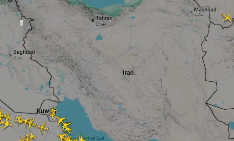 Uçuş takip sistemlerinden elde edilen datalara nazaran, İran hava alanı büsbütün boş kaldı.