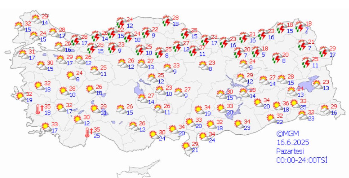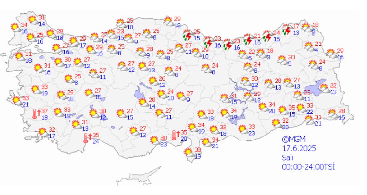Tekin, yarın Batı Akdeniz’in iç bölümleri, Orta Karadeniz’in kıyı kısımları, Doğu Karadeniz ve Doğu Anadolu’nun doğusunda sağanak ve yer yer gök gürültülü yağışların görüleceğini söyledi.