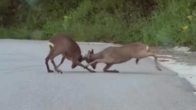 Düzce'deki köy yolunda iki karacanın boynuzlarıyla inatçı bir halde birbirlerini itmesi, güvenlik kameralarına yansıdı.